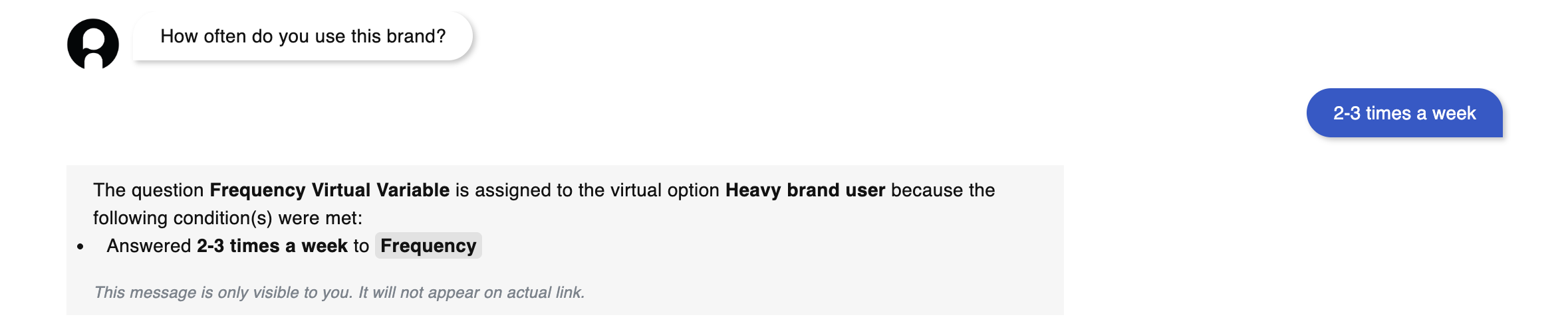 - This is an example of a Condition Logic Indicator when the variable conditions are met from a Virtual Question