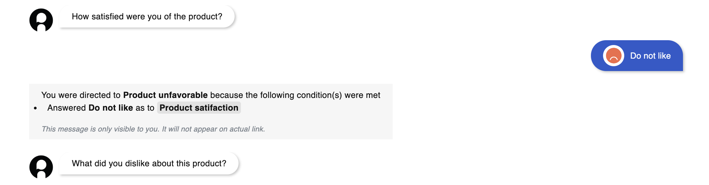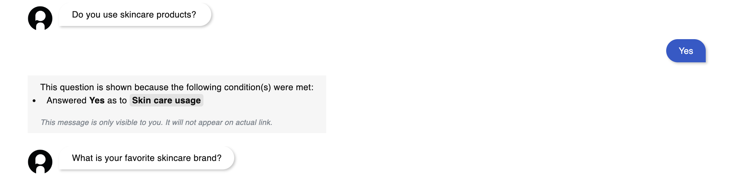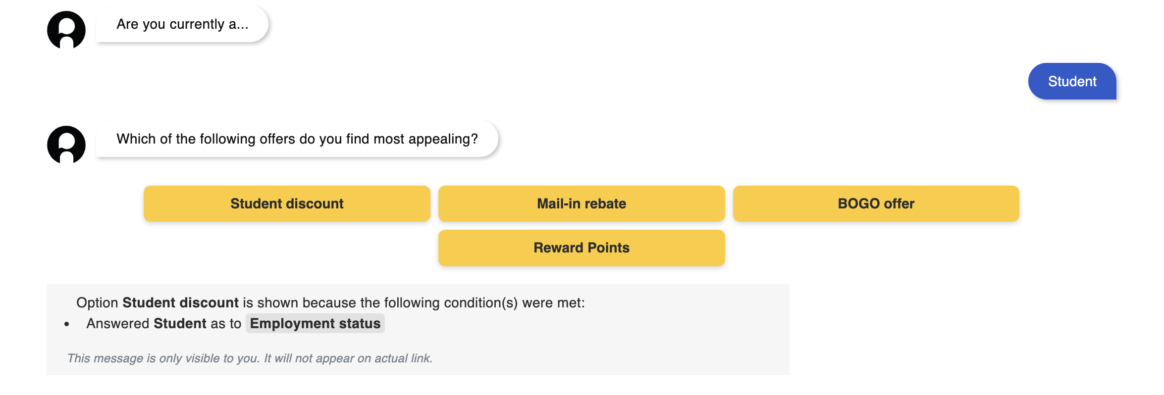 - This is an example of a Condition Logic Indicator in the Preview page when the Option Conditions are met from a Choice question
