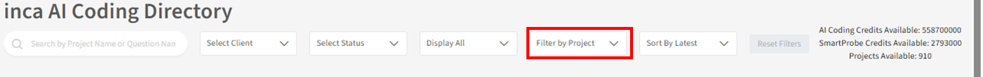 4. Once the Project name has been assigned to the coding instance, you may now use to filter the Project in the AI Coding Directory page.