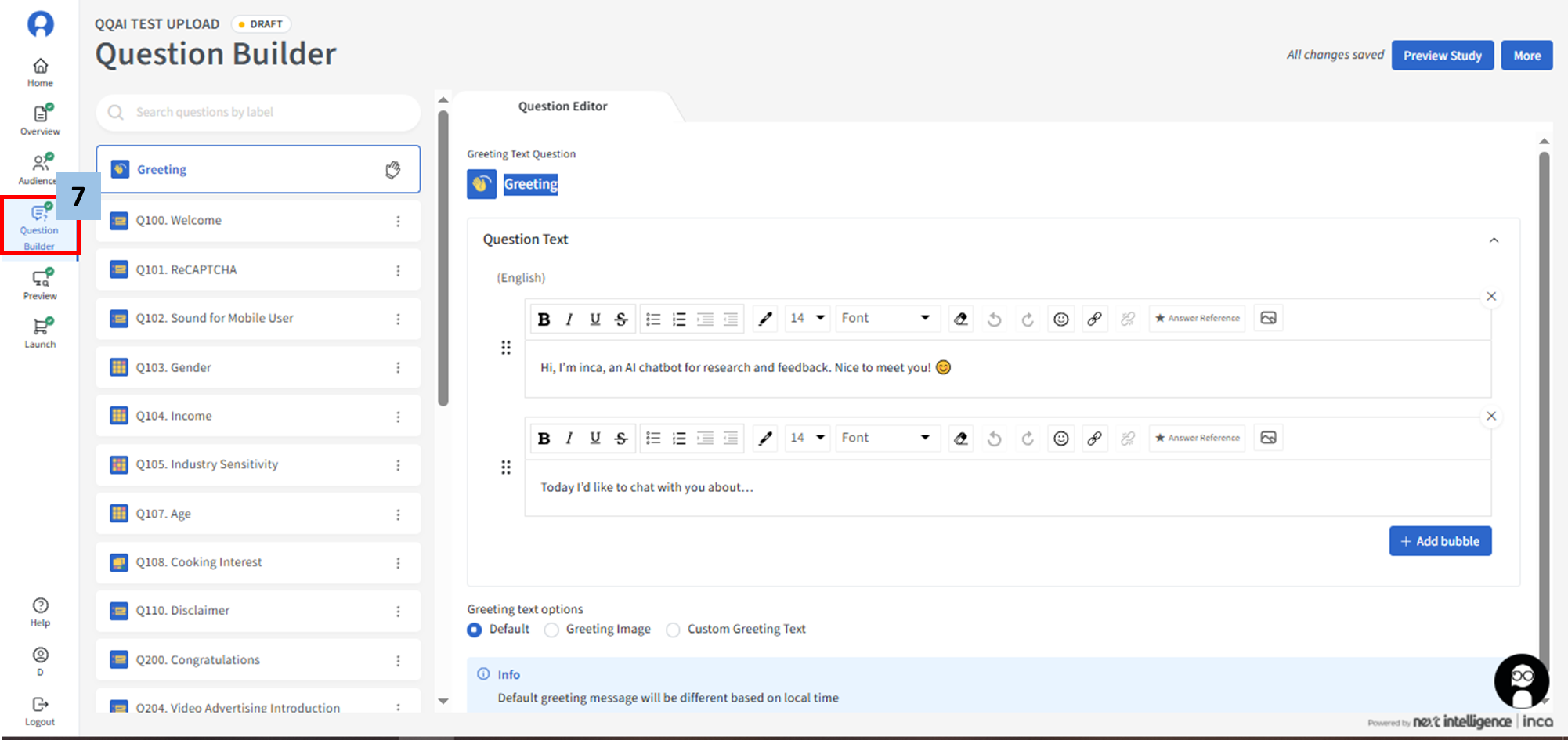 7. User will be taken to the Overview page. Click Question Builder to review the individual questions that were uploaded.
