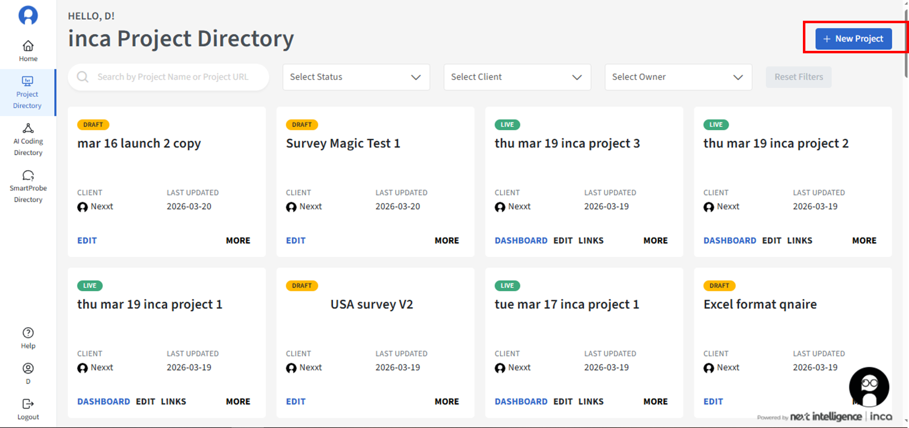 - A new Project Card is created in the Project Directory