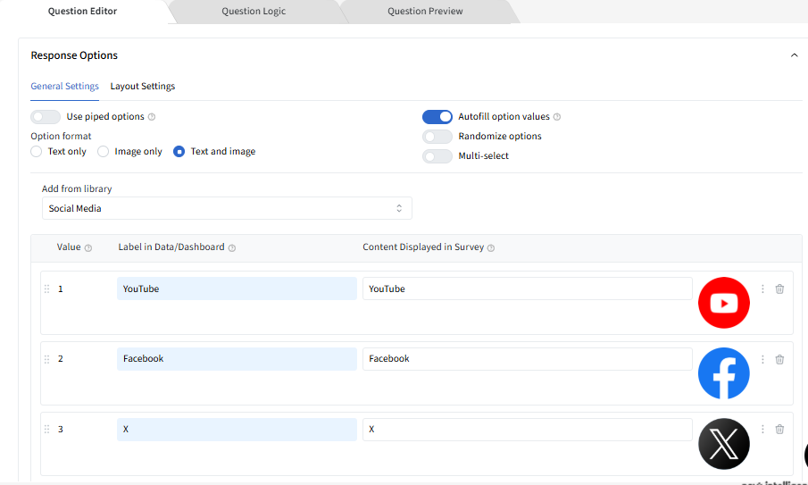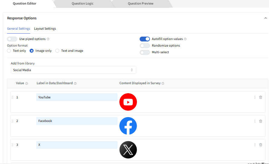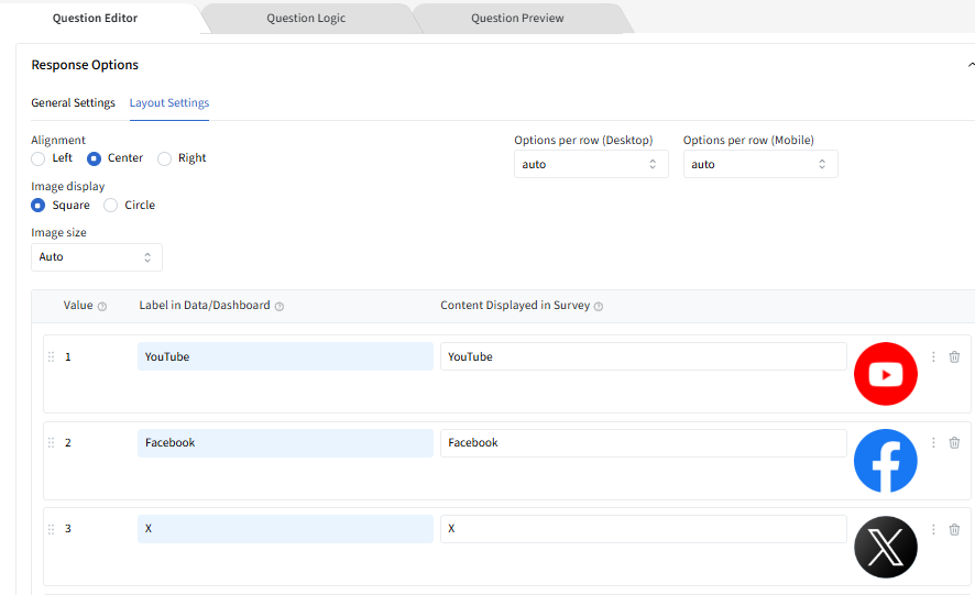 - For image format, the labels will not be visible to participants but make sure to include the label for each option as a reference on your dashboard