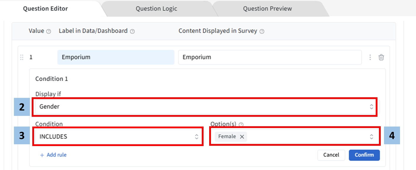 5. If you need to add more conditional logic to the same option, click (+) Add Rule.