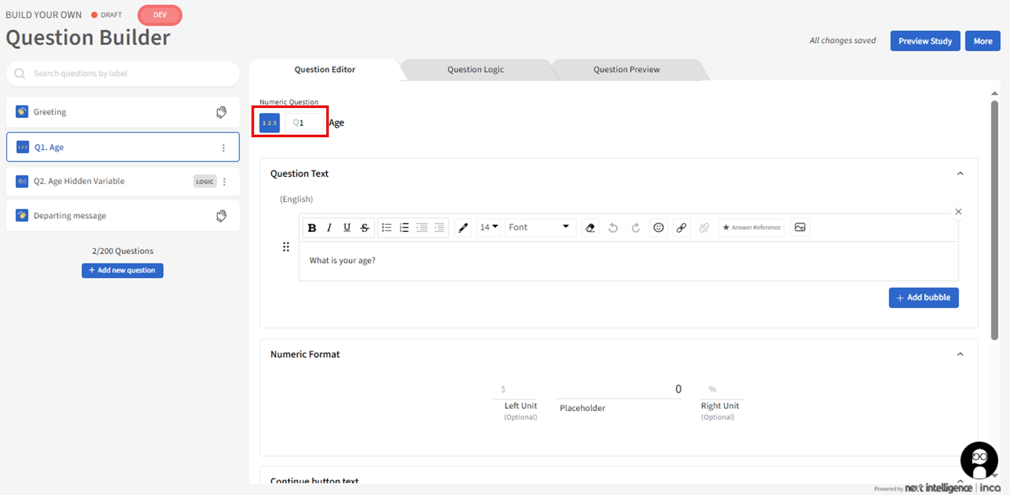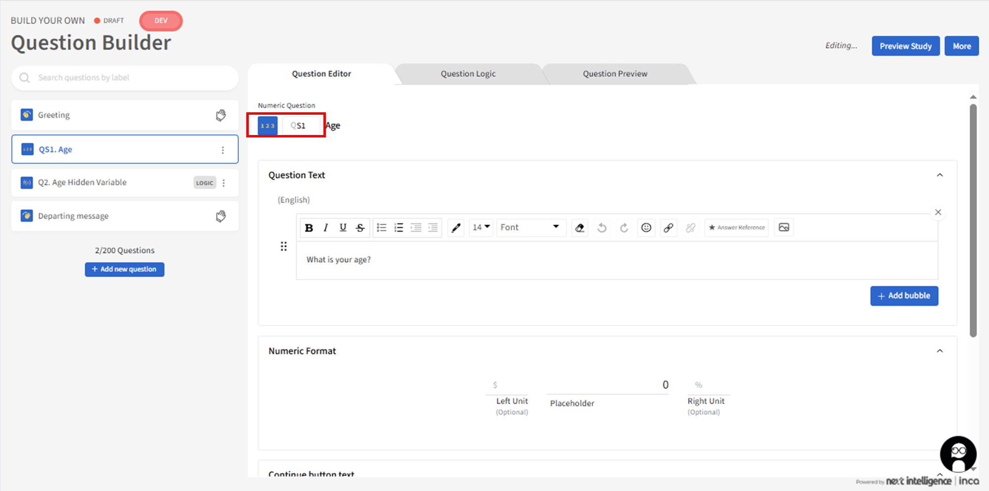 2. Add your question in the Question Builder page and then edit the Question Number and Question Label accordingly.