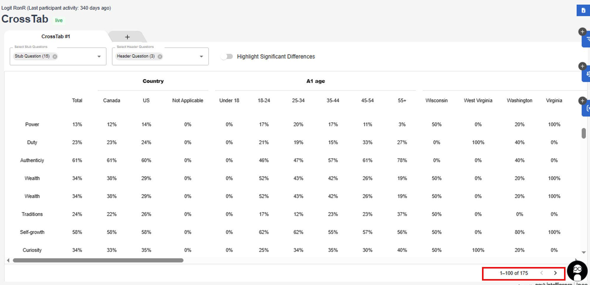 - You can select as many questions as you want depending on the subgroups you want to read or analyze (For example -- by Country and by Age).