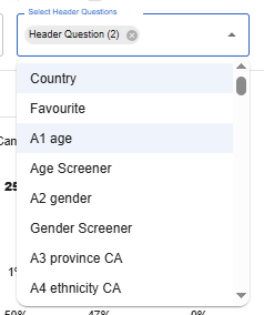 | Current question types that you can add in the Header Question | Single Choice, Multiple Choice, Rating, Rank Order, Scale, Map, Popup Cards, Tradeoff Ranking, NPS Plus, Virtual Question, OE question (after codes exported from AI Coding)