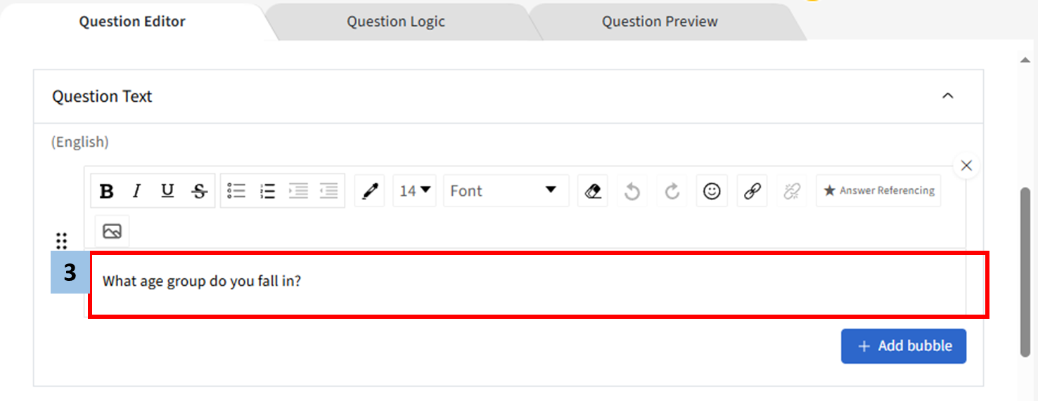 3. Write your question number or label in the upper box and write your question in the Question Text Box.