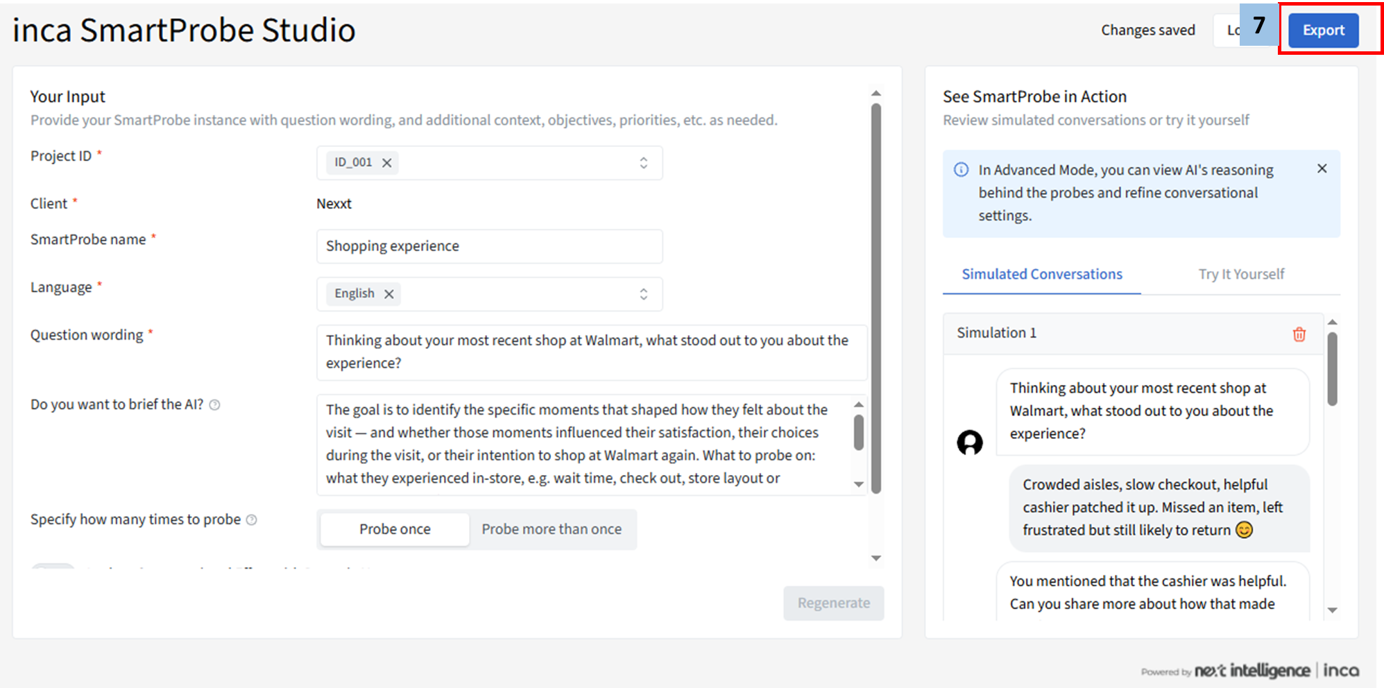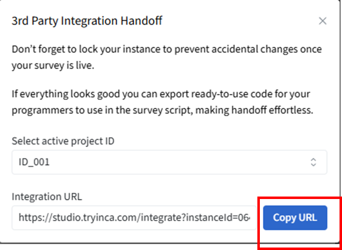 7. If the generated probes meet your expectations, you can click Export to generate the configuration for your developers. Then, copy the URL and share it with your programmers to finalize the integration in your survey platform.