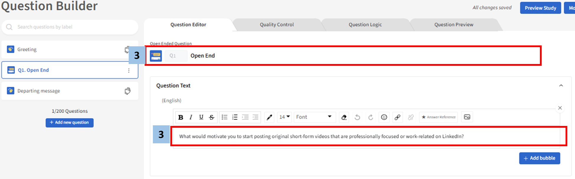 3. Write your question number or label in the upper box and write your question in the Question Text Box.