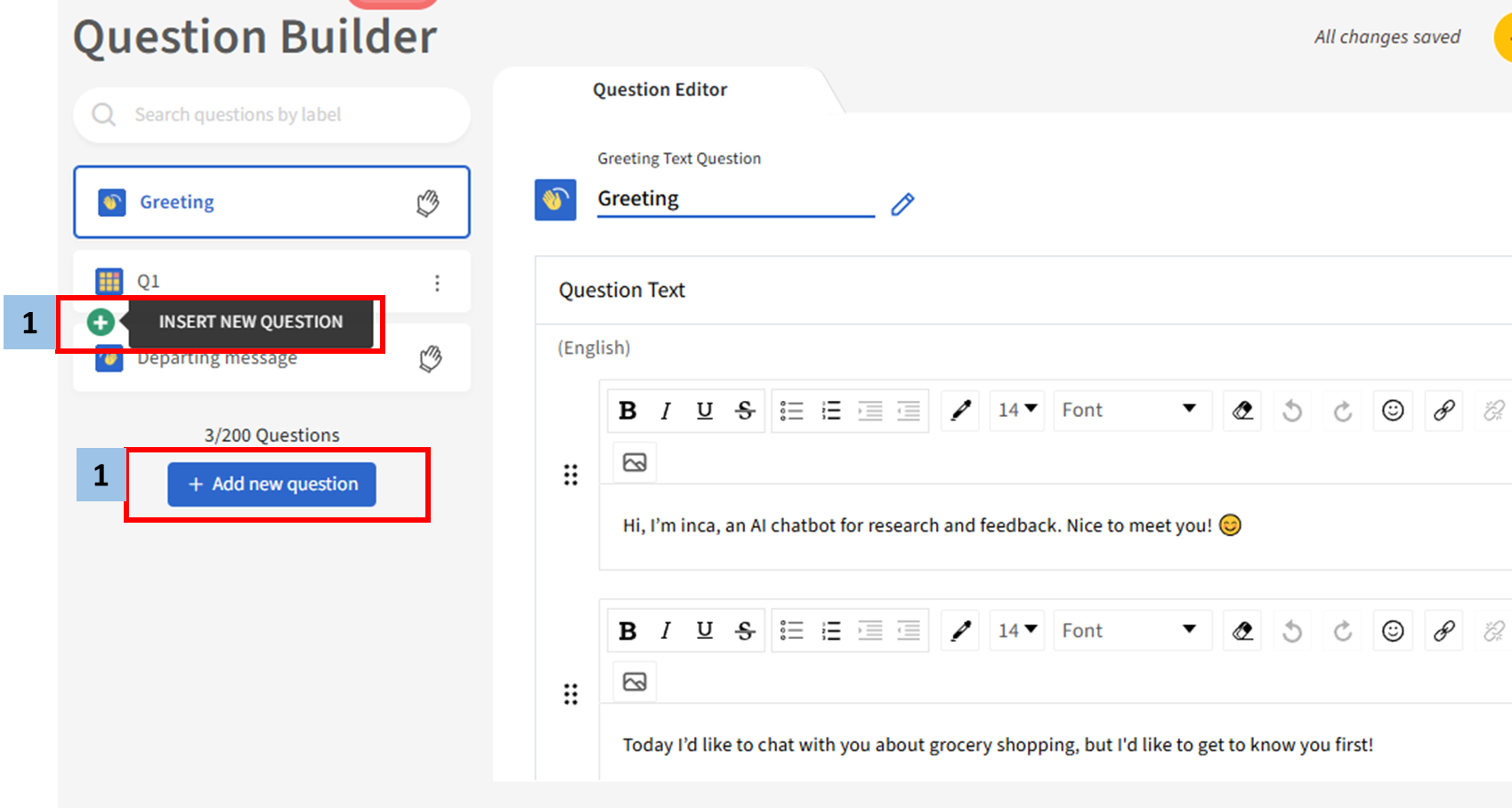 Once you are satisfied with the Simulated Conversations, make sure that it has the status "Changes Saved" and then click "Back to Question Editor" to continue editing other questions in your survey.