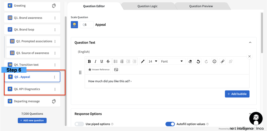 6. Prepare your Monadic questions (i.e. Appeal, KPI Diagnostics).