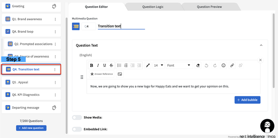 5. Before setting up the Monadic questions, you can add a Multimedia question as a transition text to your next section.