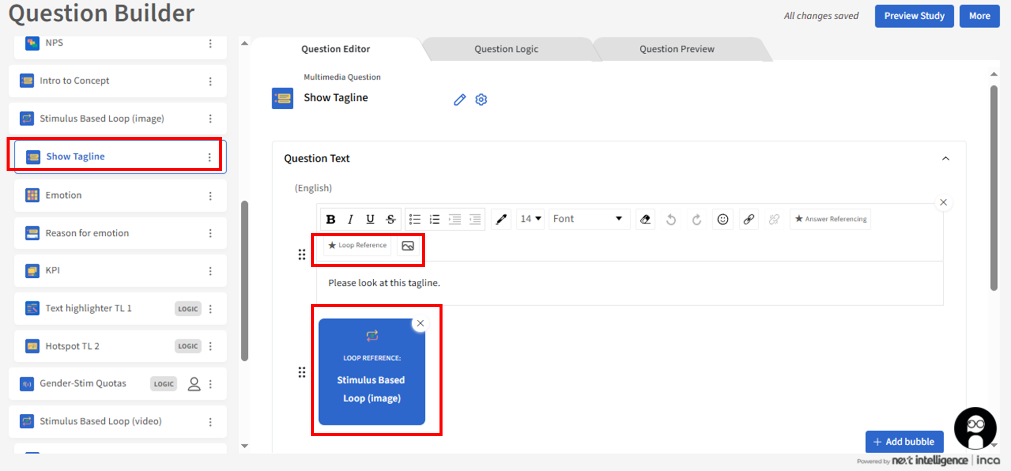 In the Loop: Question based, user can select the format of Loop Reference (either Text, Image, Video)