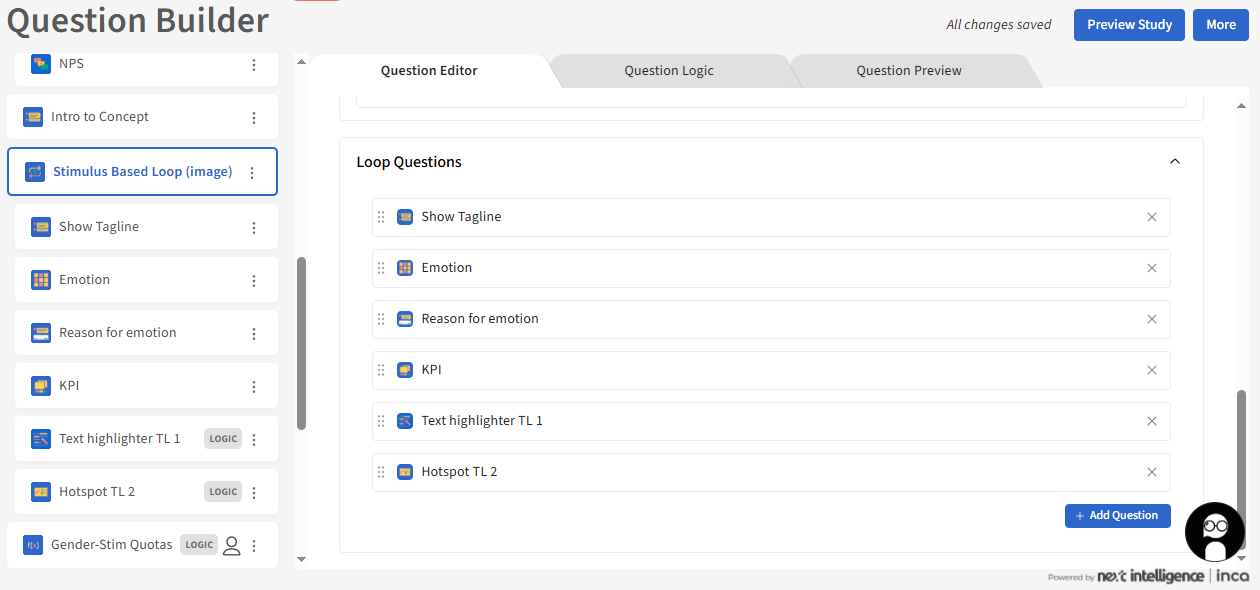 Note: Currently, Specialty Tools questions such as Hotspot, Video Annotation, Text Highlighter placed under a loop don’t support stimulus references. If users want to use these question types under a stimulus-based loop, they will need to create one for each stimulus and set a Pre-condition logic for each stimulus in the loop.