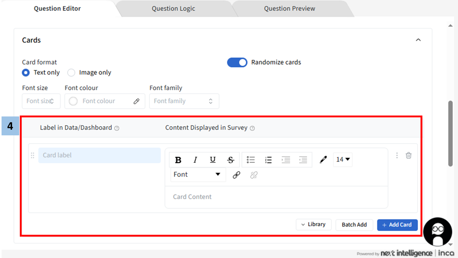 - The users can specify the card formats and choose from 'Text only', 'Image only'