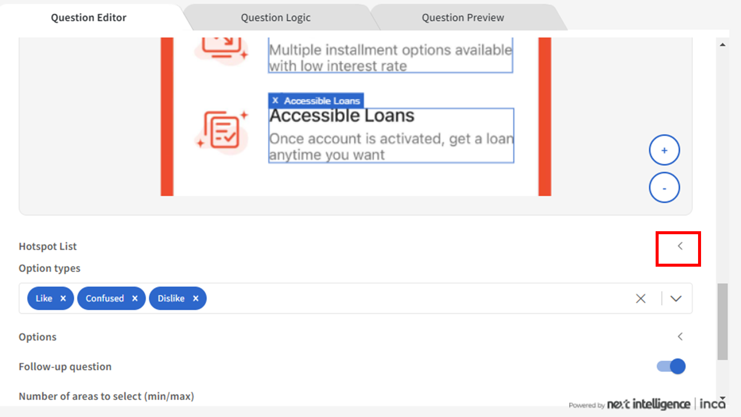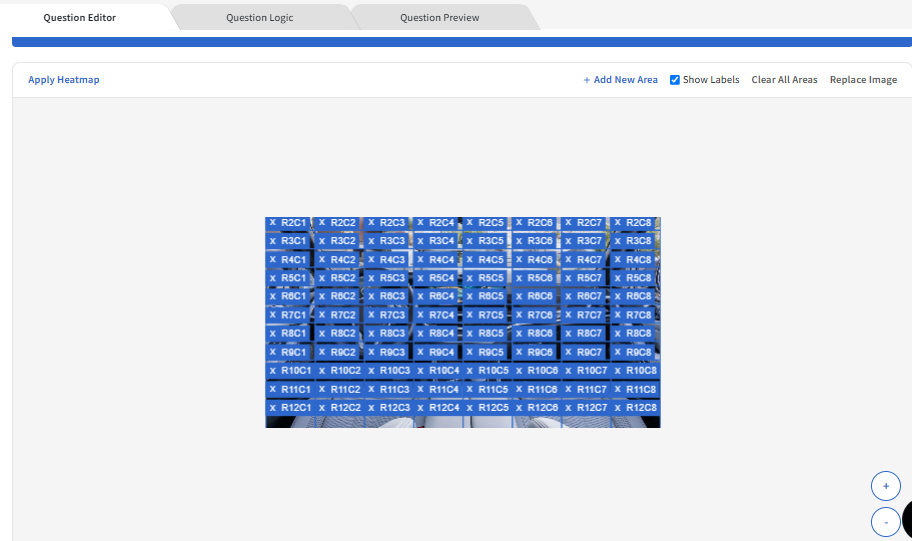 - You can also delete the area/label by clicking the X icon of the blue text box. (Toggle on the Show Boxes in the Question Setting to guide the participants which areas are clickable). To remove all AI generated areas, simply click Clear All Areas.